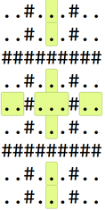 if(i != v/2 && j != v/2 && tabula[r+i][c+j] == '#')
