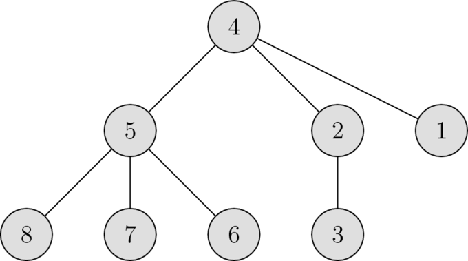 Text uvedený za // je komentár – v skutočných vstupoch sa žiadne komentáre samozrejme nachádzať nebudú. Druhý test má správny formát. Strom v prvom teste vyzerá nasledovne: