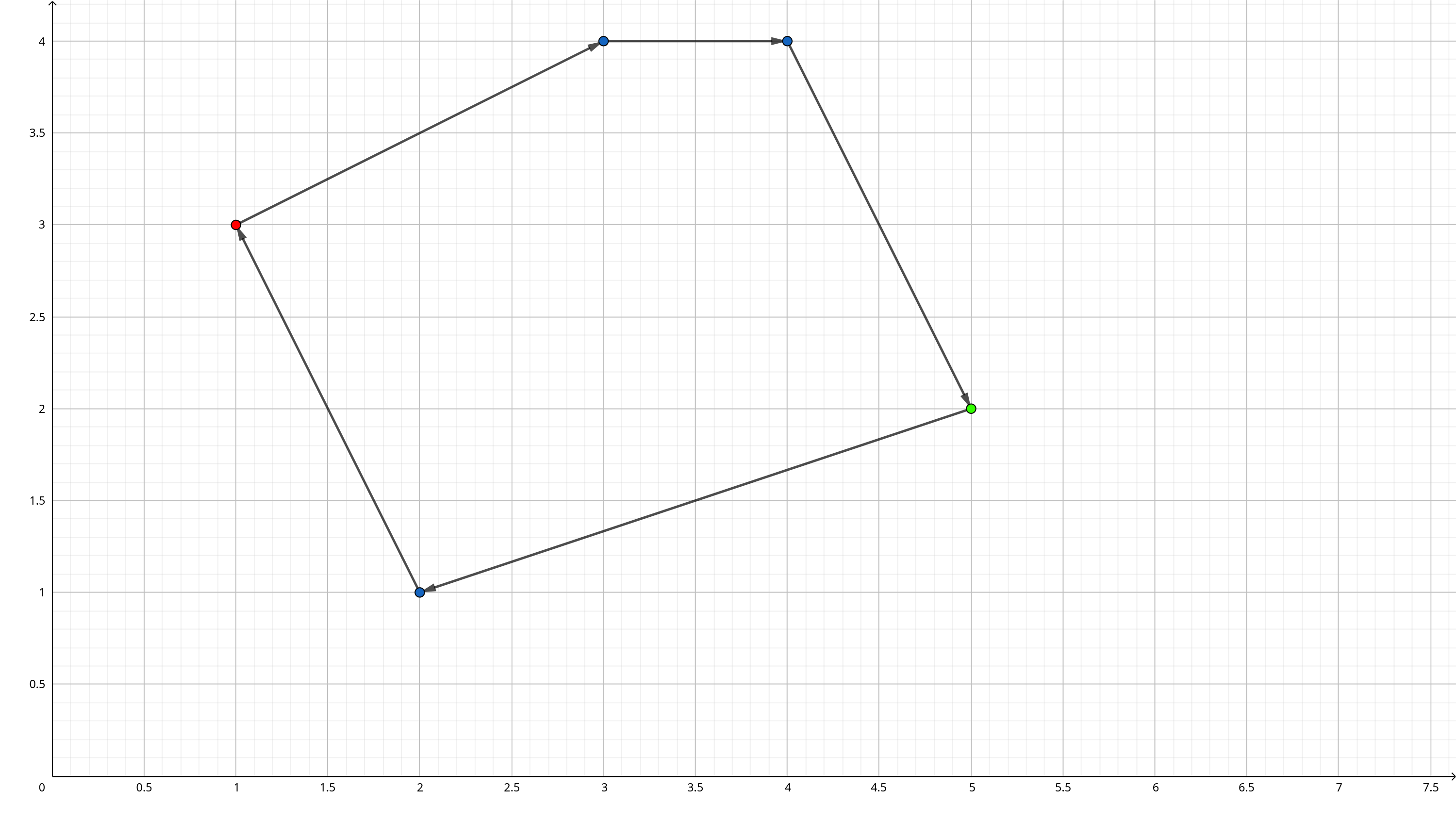KMS začína v najzápadnejšom meste, a potom sa vydá na východ k najvýchodnejšiemu mestu. Po ceste môže navštíviť niektoré mestá, tie však musia mať rastúcu zemepisnú dĺžku ($x$-ovú súradnicu).