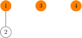 Na začiatku máme izolované vrcholy, čiže jednovrcholové komponenty súvislostí zodpovedajúce stromom s jedným vrcholom: