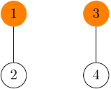Teraz ak chceme spojiť napríklad vrcholy 2 a 4 do jedného komponentu, mohli by sme ich na seba zavesiť ako chceme, ale najlepšie to bude urobiť takto: