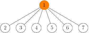 Ak sa zamyslíte, zistíte, že komponenty s veľkým počtom vrcholov budú eventuálne reprezentované dosť hlbokými stromami. Napríklad, takto by mohol vyzerať strom reprezentujúci 7-vrcholový komponent: