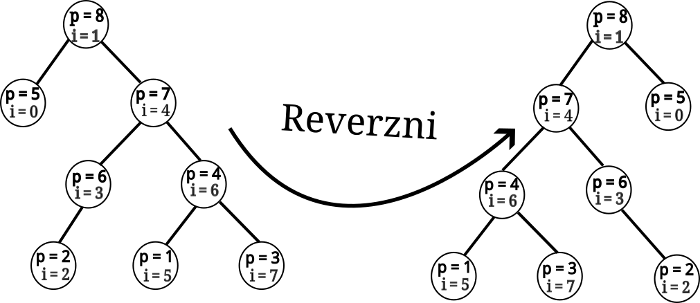 reverzni a b - zrkadlovo obrátime časť radu medzi