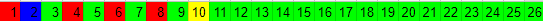 A takto pokračujeme ďalej pre všetkých kandidátov $\leq n$. Ak by $n = 26$ ako na našom obrázku, už by sme pre žiadne ďalšie prvočísla nič neoznačili, keďže už sú väčšie ako $\sqrt n$.