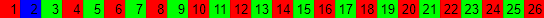 Na začiatku sú všetky čísla kandidátmi na prvočíslo, okrem jednotky (kandidáti zelenou, neprvočísla červenou):
