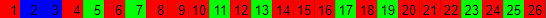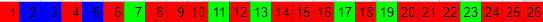 A takto pokračujeme ďalej pre všetkých kandidátov $\leq n$. Ak by $n = 26$ ako na našom obrázku, už by sme pre žiadne ďalšie prvočísla nič neoznačili, keďže už sú väčšie ako $\sqrt n$.